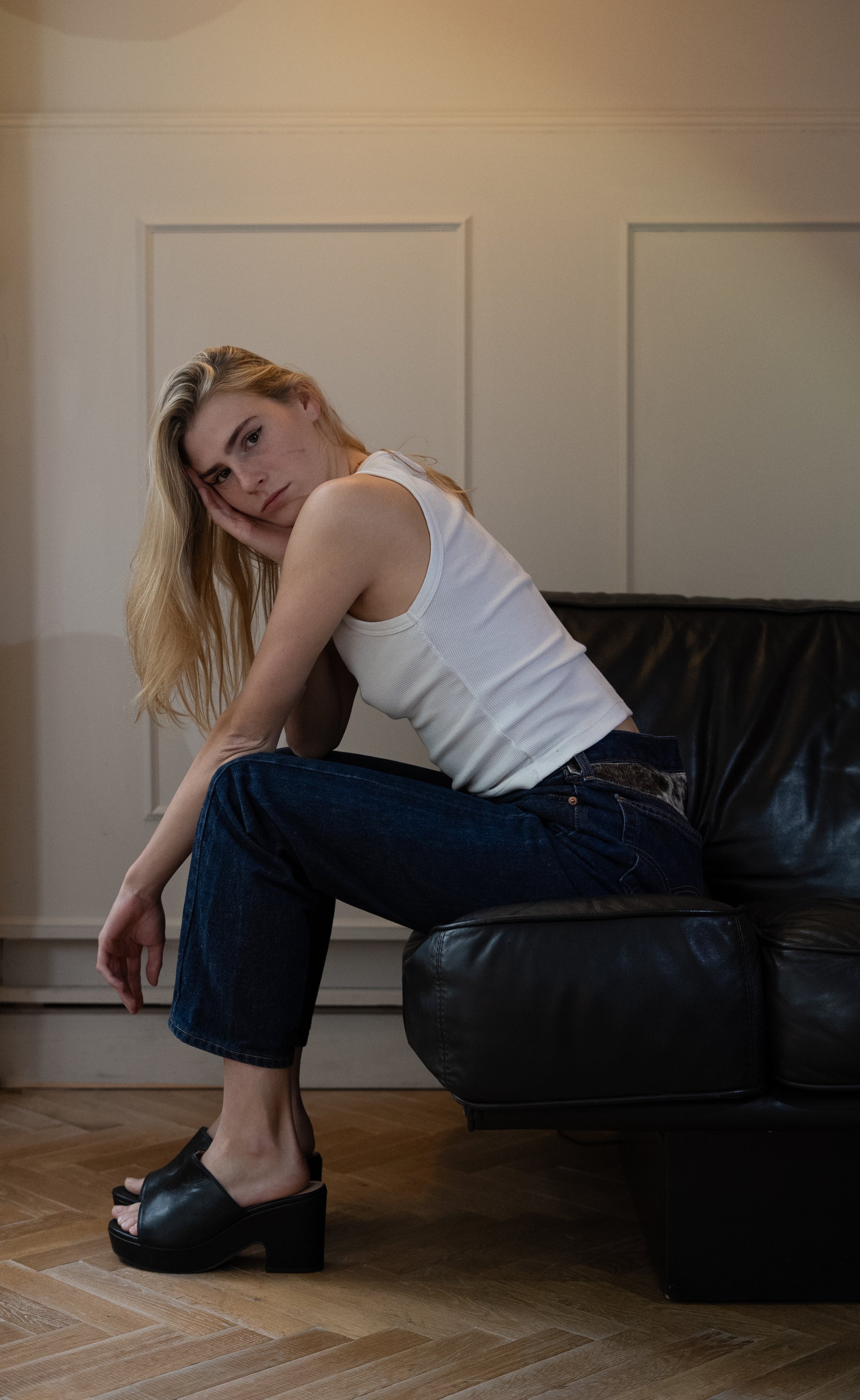 Vintage Levi's 501 with added cow leather details.